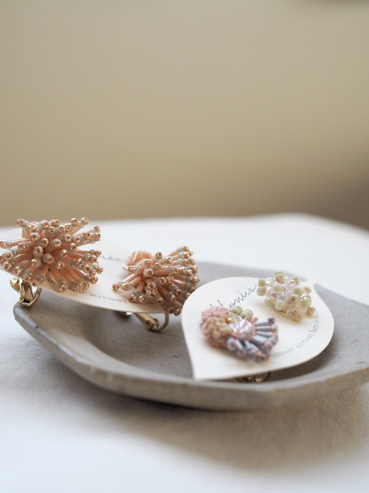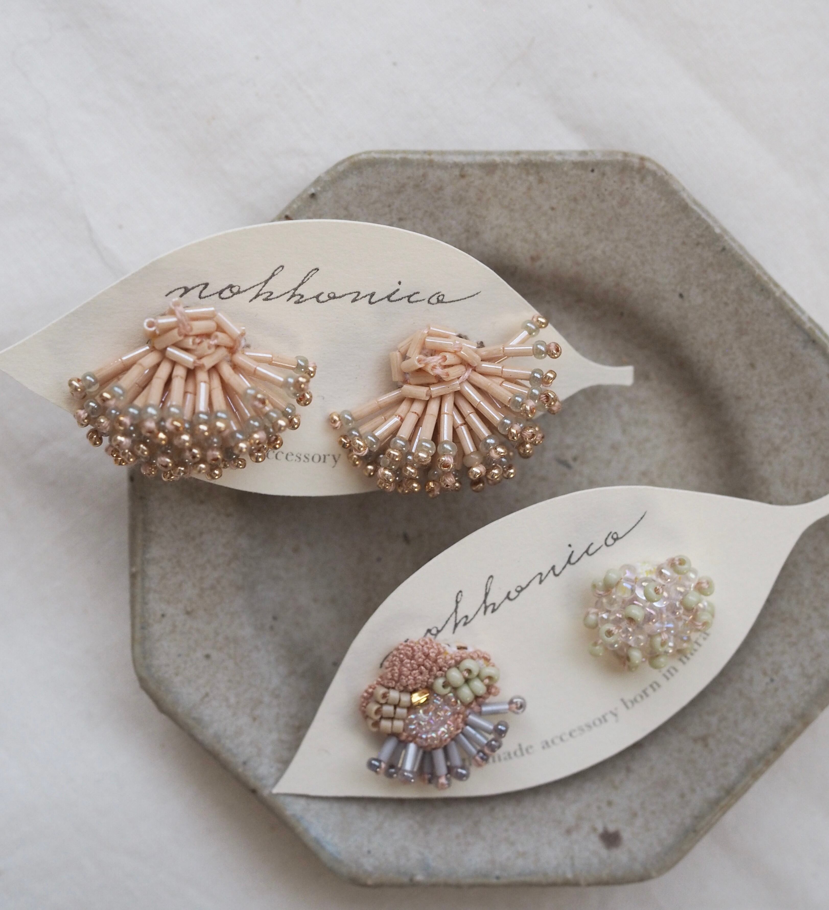 ※刺繍アクセサリーは繊細なつくりとなっております。ビーズを強く引っ張ったりされない様、優しいお取り扱いをお願い致します。