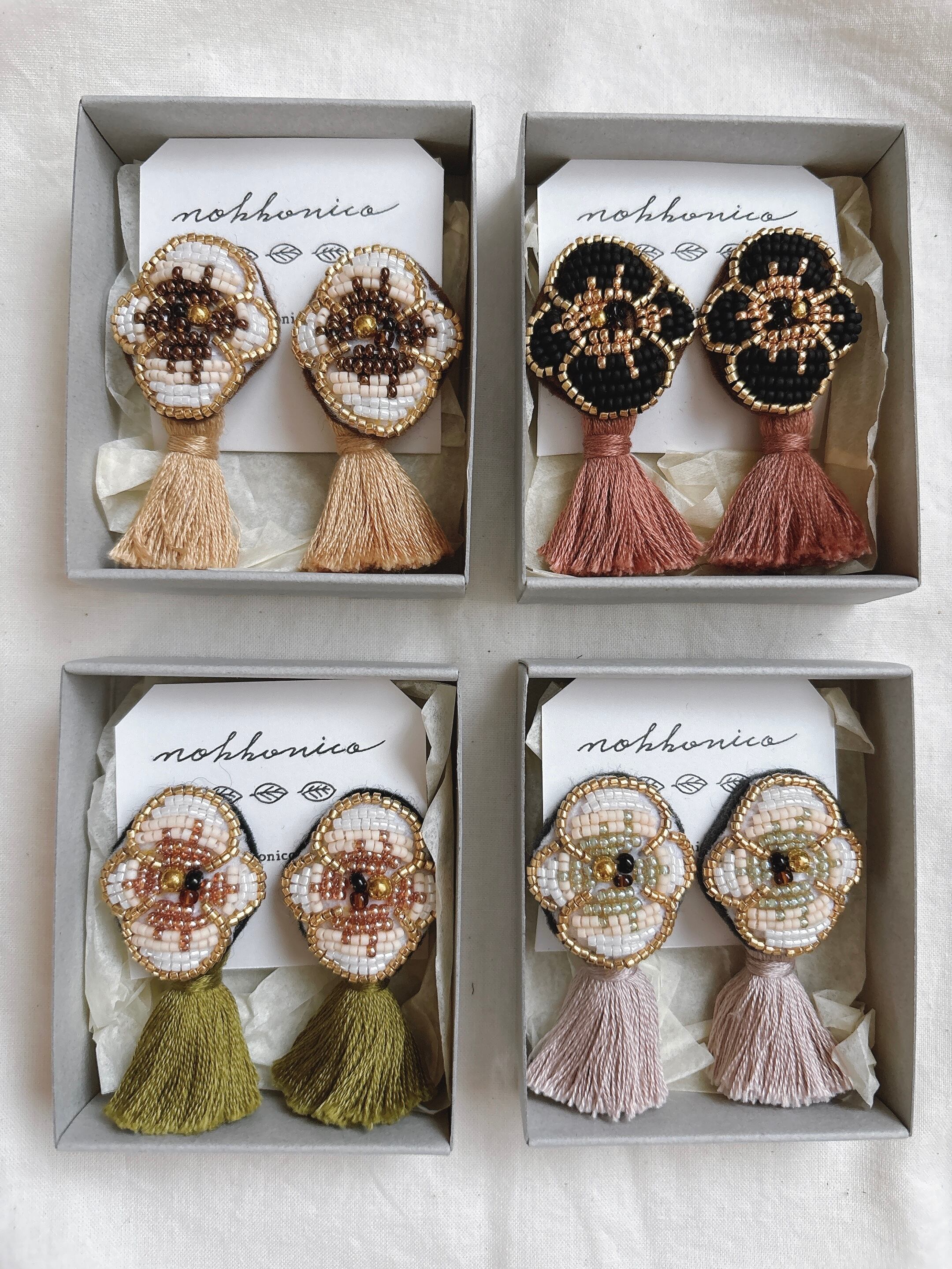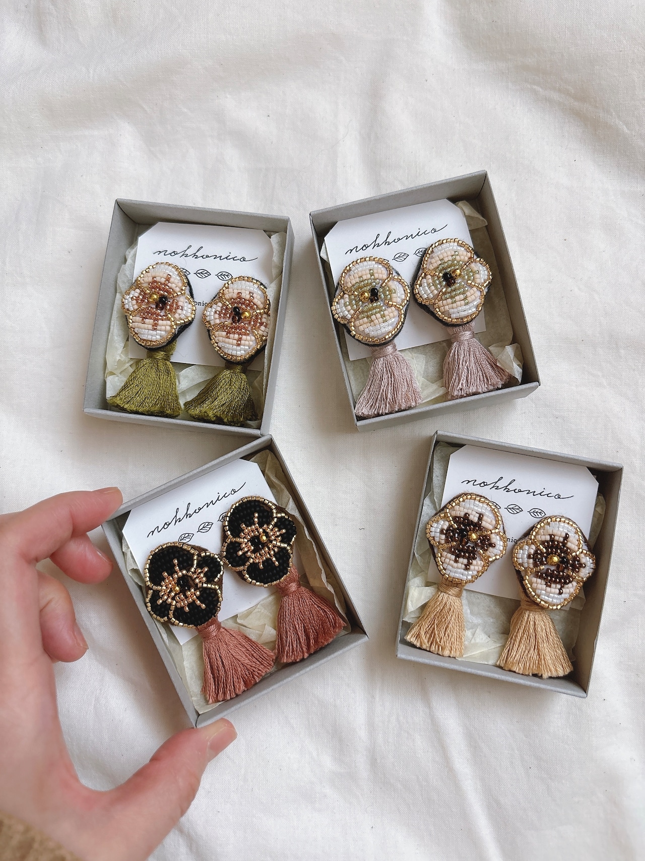 ビーズ刺繍フラワータッセルaccessory《イヤリング》